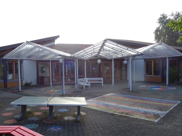 Unser Pausenhof ist mit zwei Tischtennisplatten und mit einem Klettergerät, einem Wackelbalken und zwei Tippis ausgestattet. Einige Bodenspiele, die in einer gemeinsamen Aktion mit den Eltern und Schülern unserer Schule angebracht wurden, werden zum Spielen genutzt. Außerdem gibt es kleine Spielgeräte zum Ausleihen für die Pausenzeit. Die Ausleihe organisiert jeweils verantwortungsvoll die vierte Klasse.